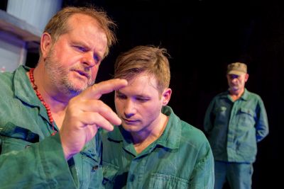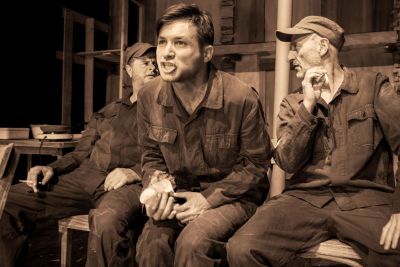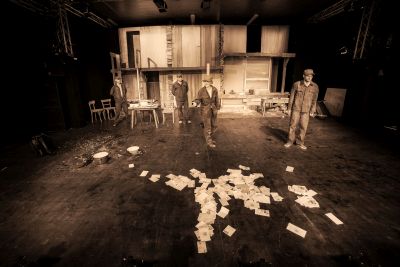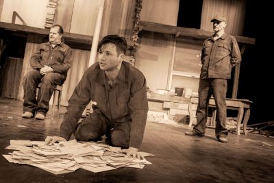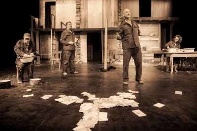 „Keine Gnade für Ed Slovik": mutige, geglückte ke-Premiere Immer geht der Tote meinen Schritt Vor 70 Jahren, am 8. Mai 1945, galt der Zweite Weltkrieg offiziell als beendet. Für das klagenfurter ensemble (ke) dringlicher Anlass, die Frage nach der Schuld zu stellen und für seine neue Produktion das schwierige Thema Fahnenflucht anhand konkreter Ereignisse zu beleuchten. Am Dienstag galt zur Uraufführung von Rüdiger Hentzschels Stück im dicht besetzten Theater Halle 11 die Parole: „Keine Gnade für Ed Slovik". Sein kurzes Leben stand unter keinem guten Stern. Und seine Hinrichtung war angesichts der unüblich humanen Umgangsweise der USA mit Deserteuren an Tragik kaum zu überbieten. Denn der 24-jährige Pole war seit 1864 der einzige Fahnenflüchtige der US-Army, der erschossen wurde. Knapp vor Kriegsende. Hentzschel erzählt die Geschichte mit viel Anteilnahme und ohne aufgesetzten Pathos. Für sein stimmig verdichtetes, stark dokumentarisch geprägtes Mosaik aus Texten von Hans Magnus Enzensberger, Heiner Müller und William Bradford Huie zeigt er einen unbedarften Pechvogel, der eingezogen wird, als sich das Blatt zum Guten wendet. Vor dem Hintergrund einer kriegsversehrten Hausruine tragen Oliver Vollmann, Alexander Mitterer und Natalie Ananda Assmann Kartoffel schälend und kochend Slovik durch die Stationen seines Lebens, wechseln Blickwinkel, sind Gefängniswärter. Arbeitgeber, Kameraden, Freunde, Frau und Vollstrecker. Miha Kristof als fremdbestimmtes Bauernopfer und argloser Deserteur mit „gesundem" Fluchtinstinkt ist genauso überzeugend wie alle Beteiligten, die sich der kollektiven Schuldfrage als inhaltstragendem Element der Handlung stellen müssen. Das Dilemma Fahnenflucht können die (manchmal naiven) Schlussfolgerungen auf den (mutigen oder feigen?) Akt der Gewaltverweigerung nicht lösen… Am Ende, macht sie betroffen — die Fratze Krieg. Wenn Hentzschel als russischer Kommandeur einen Deserteur erschießen lässt und dabei seine Seele zerbricht: „Und immer geht der Tote meinen Schritt", wird er sagen. Verhallen wird ihm dieser eine, lauteste Schuss nie. Kronenzeitung, Irina Lino |