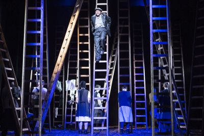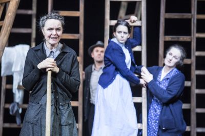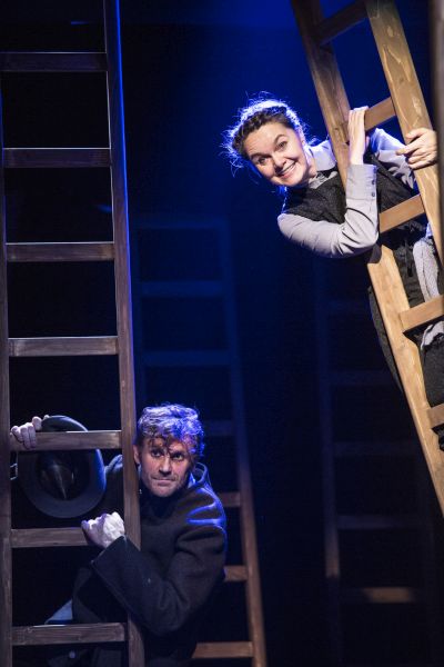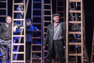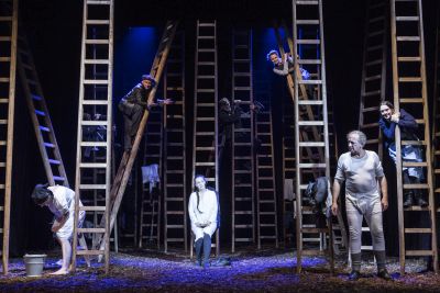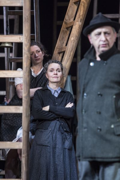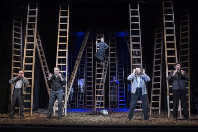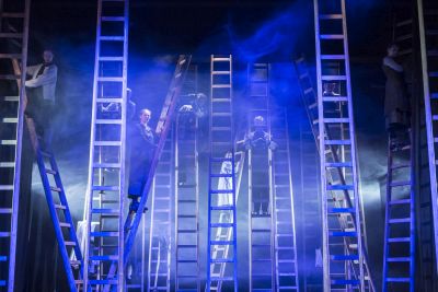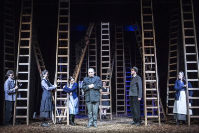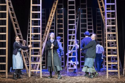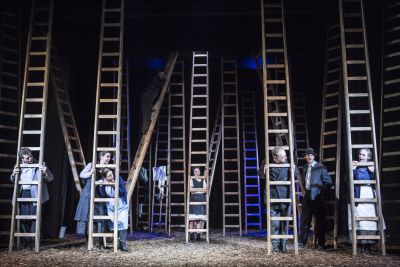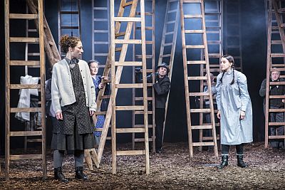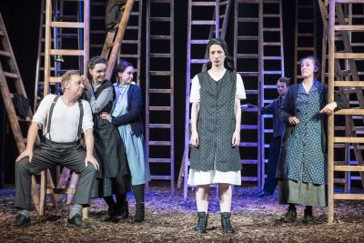 Theater Scala: Tannöd Das „Theater zum Fürchten“, in diesem Fall in seiner Wiener Spielstätte Scala, findet erfreulicherweise immer wieder interessante Stücke. Diesmal ist es ein historischer Kriminalfall, der als Vorlage zu einem Roman von Andrea Maria Schenkel diente, der seinerseits wieder die Grundlage für das Drama „Tannöd“ bildete. Ob diese Kette in der Praxis funktioniert, hat sich DieKleinkunst-Redakteur Gerd Kern angesehen. Die Ausgangssituation für „Tannöd“ ist wirklich interessant: Am 1.April 1922 wurde in Hinterkaifeck eine sechsköpfige Bauernfamilie in ihrem abgelegenen Hof brutal mit einer Spitzhacke ermordet. Es gab zahlreiche Vermutungen und Verdachtsmomente, doch wurde der Fall nie geklärt. Die Autorin Andrea Maria Schenkel faszinierte diese Bluttat so sehr, dass sie daraus einen Roman erarbeitete. Sie verlegte die Handlung allerdings in die 1950er-Jahre und in das fiktive Gebiet Tannöd. Es gab in der Folge zwar gerichtliche Auseinandersetzungen mit dem Journalisten Peter Leuschner, der zwei Dokumentationen zu diesem Thema veröffentlicht hatte und Plagiatsvorwürfe erhob, doch änderte das nichts daran, dass Schenkel für ihren Roman zahlreiche Preise erhielt. In der Folge erschien die Geschichte auch als Hörbuch und wurde sogar von Brigitte Oberli verfilmt. Von diesem Roman erarbeiteten Maya Franke und Doris Happl eine Bühnenfassung, die jetzt in der Inszenierung von Rüdiger Hentzschel auf die Bühne der Scala kam. Wenn der Vorhang aufgeht und man das Bühnenbild sieht, wird sofort klar, dass eine ungewöhnliche Aufführung zu erwarten ist. Auf der Bühne sieht man nämlich 21 Leitern, die in unterschiedlichen Winkeln zur Decke - oder symbolisch zum Himmel - führen. Und wie perfekt es gelingt, mit dieser spartanischen Ausstattung die verschiedenen psychologischen und räumlichen Ebenen darzustellen, ist mehr als beeindruckend. Aber auch der Umgang mit dem düsteren Inhalt selbst gelingt überzeugend. Die acht SchauspielerInnen schlüpfen in kurzen Szenen in rund 40 verschiedene Rollen und unterschiedliche Zeitebenen. Das erfolgt so logisch, dass der Zuschauer intensiv in den Ablauf der Ereignisse, aber auch in die Überlegungen der handelnden Personen hineingezogen wird. Mosaikartig werden Gedanken und Aussagen der direkt Beteiligten, aber auch von Dorfbewohnern miteinander verwoben. Überzeugend wird die dumpfe Atmosphäre der bäuerlichen Situation der 50er-Jahre dargestellt, aber auch die Abhängigkeiten, ja geradezu sklavenartigen Umstände, unter denen Mägde, Knechte, aber auch die Familienangehörigen eines dominanten Bauern vegetieren mussten. Es wird beklemmend realistisch gezeigt, wie sie materiell und sexuell bis zum Inzest ausgebeutet wurden und „die Obrigkeit“ einfach wegsah. Die Bauernfamile Tanner taumelt in nahezu biblischen Dimensionen ihrem Schicksal entgegen und das Mitleid der Gemeinde hält sich in Grenzen, denn „mit denen ist man nicht warm geworden“, meint eine Bewohnerin des Ortes. Auch die grauenvolle Behandlung einer Zwangsarbeiterin während des Krieges, die sich aus Verzweiflung erhängte, wird thematisiert. Dadurch kommt der Verdacht auf, dass ihr Bruder als Rache die Morde begangen haben könnte. Aber es ergeben sich auch zahlreiche andere, durchaus schlüssige Motive für dieses Massaker. Es soll hier allerdings nicht näher auf die Handlung eingegangen werden, denn im Gegensatz zur Realität präsentiert das Stück am Ende den Täter. Die Aufführung bietet eine spannende Vermischung von Krimihandlung und realistischem Volksstück, das zugleich fesselt und schonungslos die Engstirnigkeit und Gnadenlosigkeit dieser Umstände aufzeigt. Sehr schnell wird klar, dass hier nicht ein Albtraum, sondern historische Realität abgebildet wird. Regisseur Rüdiger Hentzschel, der auch für das eindrucksvolle Bühnenbild verantwortlich zeichnet, ist hier eine exemplarische Aufführung gelungen, die beweist, wie packend historische Ereignisse auf die Bühne gebracht werden können. An dieser Stelle sollten üblicherweise die Leistungen der Darsteller aufgezeigt und kritisiert werden, doch agiert das gesamt Ensemble so überzeugend, dass „nur“ ihre Namen angeführt werden – versehen mit dem gemeinsamen Prädikat: Beeindruckend! - Monica Anna Cammerlander, Carina Thesak, Johanna Withalm, Birgit Wolf, Sebastian Anton Maria Brummer, Bernie Feit, Hermann J.Kogler und Wolfgang Lesky. Zum Schluss nur noch eine sehr wichtige Anmerkung: Den Besuch dieser Aufführung sollte man sich wirklich nicht entgehen lassen! Die Kleinkunst, Gerd Kern, 2.12.2015 |